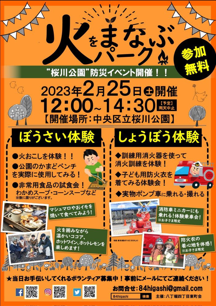 桜川公園で防災テーマの「火をまなぶパーク」を開催!かまどベンチ&火起こし体験やポンプ車試乗など