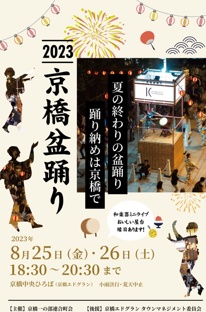 京橋に訪れる全ての方に楽しんでいただける盆踊りとなりますので、ぜひ皆様お誘いあわせの上、お越しください。